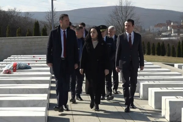 Presidentja e Kosovës, Vjosa Osmani, kryetari i Kuvendit, Glauk Konjufca dhe kryeministri Albin Kurti kanë bërë homazhe tek varrezat e familjes Jashari në Prekaz, në nderim të 25-vjetorit të Epopesë së Ushtrisë Çlirimtare të Kosovës.