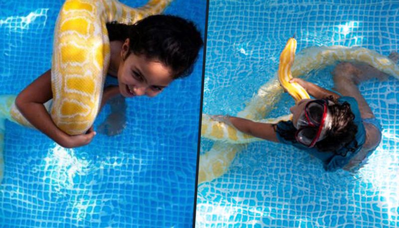 Një vajzë 8-vjeçare ka një partner noti mjaft të pazakontë. Ajo preferon të kalojë kohë me pitonin e saj, i quajtur Belle. Gjarpri i verdhë prej 3.3 metrash, është një nga shumë kafshët që familja e saj mban në shtëpinë e tyre në një vend të Izraelit jugor.