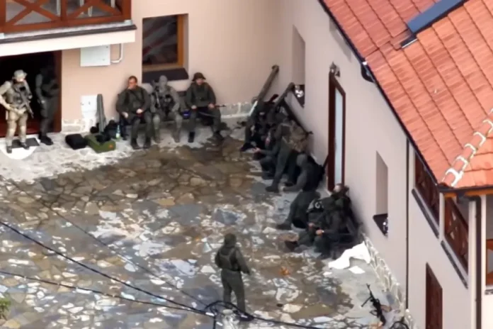 Grupi prej rreth 50 personave që udhëhiqej nga kryeterroristi, Milan Radoiçiq – i sanksionuar nga Shtetet e Bashkuara të Amerikës dhe i kërkuar edhe nga institucionet vendore si i përfshirë në vrasje – me veshje ushtarake ishte vendosur në Manastirin e Banjskës e përreth tij.