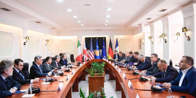Ka kaluar më shumë se një orë që kur ka filluar takimi i ambasadorëve të vendeve të Quintit me ekipin negociator, ku po diskutohet për dialogun Kosovë-Serbi.