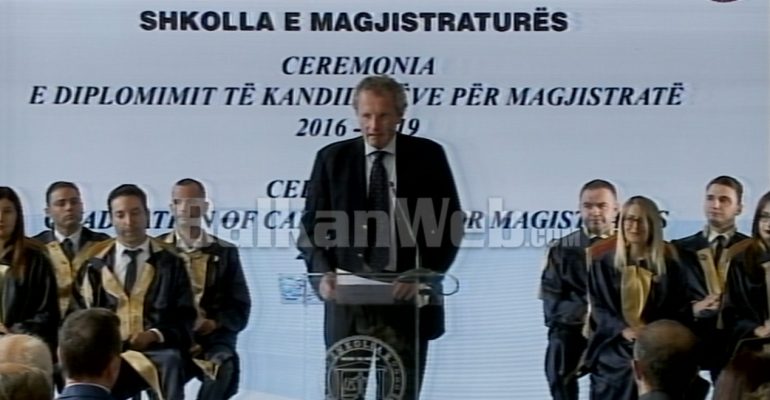 Në fjalën e tij, gjatë ceremonisë së diplomimit të magjistratëve të rinj, kreu i diplomacisë së OSBE u shpreh se përparësi themelore për drejtësinë në Shqipëri duhet të ketë pavarësia dhe integriteti i sistemit, duke vënë theksin te një sistem drejtësie transparent.