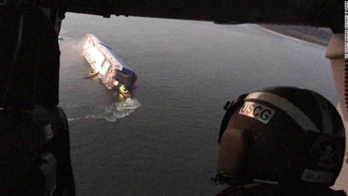 Anija e tonazhit të rëndë e cila po transportonte automjete pësoi një defekt dhe mbeti e varur në anën e saj të majtë afër portit të St. Simons Sound në Georgia.