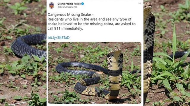Kobra me shirita, me origjinë nga Afrika Perëndimore njihet si një ndër gjarpërinjtë më helmues në botë, gjë që ka bërë që policia të njoftojë banorët që të bëjnë kujdes.