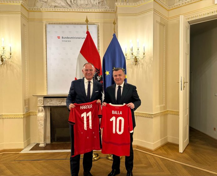 Forcimi i bashkëpunimit mes Shqipërisë dhe Austrisë në fushën e sigurisë ishte në fokus të takimit të zhvilluar të hënën në Vjenë mes ministrit të Brendshëm Taulant Balla dhe homologut austriak, Gerhard Karner.