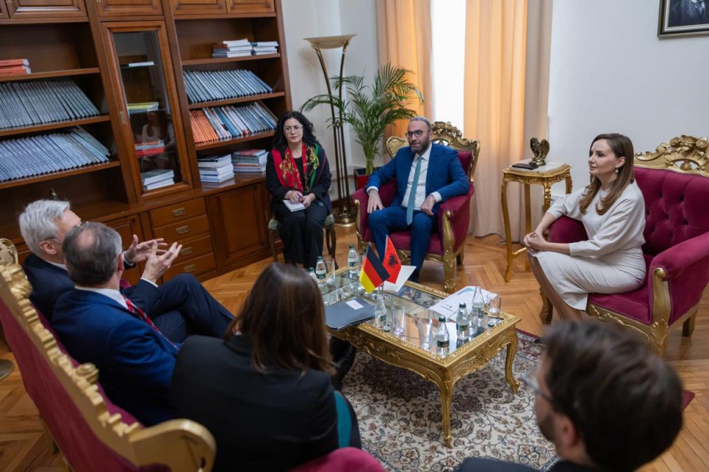 Kryetari i grupit parlamentar në Partinë Demokratike, Gazment Bardhi dhe deputetja Jorida Tabaku, njëherësh kryetare e komisionit për të Drejtat e Njeriut dhe Mjetet e Informimit Publik, u takuan sot në kryesinë e Kuvendit me ministrin per Europën në Ministrinë e Jashtme Gjermane, Gunther Krichbaum.