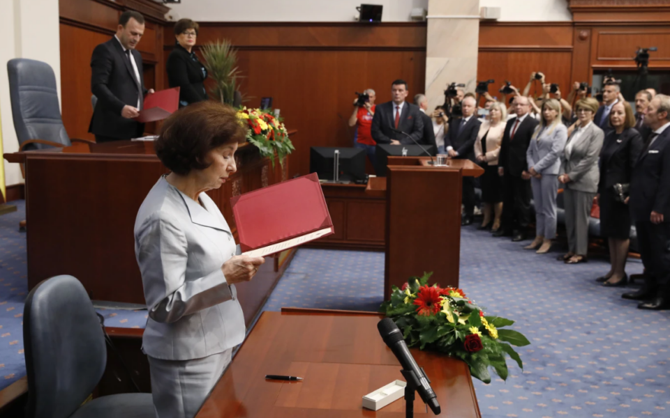 Presidentja e re është profesoreshë universiteti dhe një nga hartueset e Kushtetutës së vendit. Gjatë betimit në parlament ajo nuk e përdori referencën “Maqedoni e Veriut” siç është në Kushtetutë, por emrin e vjetër “Maqedoni”.
