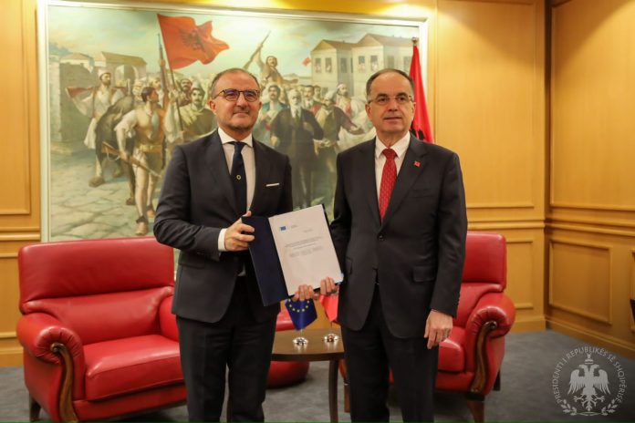 Presidenti Bajram Begaj, priti sot të Ngarkuarin me Punë të Delegacionit të Bashkimit Evropian në Tiranë, ambasadorin Luigi Soreca, i cili i dorëzoi Raportin e Progresit për vitin 2023 të Komisionit Evropian për Shqipërinë.