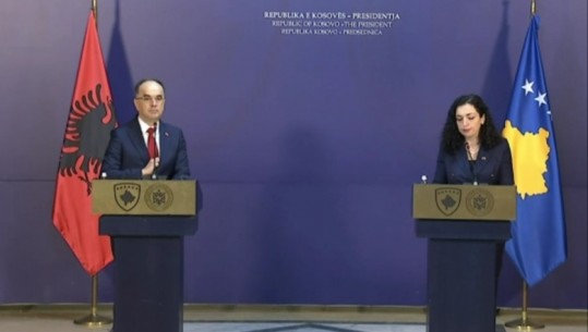 Presidenti Bajram Begaj po zhvillon një konferencë të përbashkët në Prishtinë me homologen Vjosa Osmani.