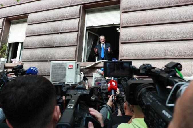 Sali Berisha ka mbajtur fjalim nga dritarja re Kryesisë së Kuvendit, aty ku pak më parë u futën disa nga deputetët e opozitës, që nuk u lejuan nga Garda, që të futen nga dera.