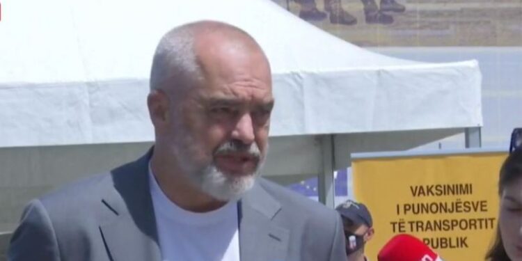 Rama shoqërohej në inspektimin në sheshin “Skënderbej” nga ministrja e Shwndetesise Ogerta Manastirliu, ndërkohë që nga sot ka nisur vaksinimi dhe për punonjësit e transportit publik.