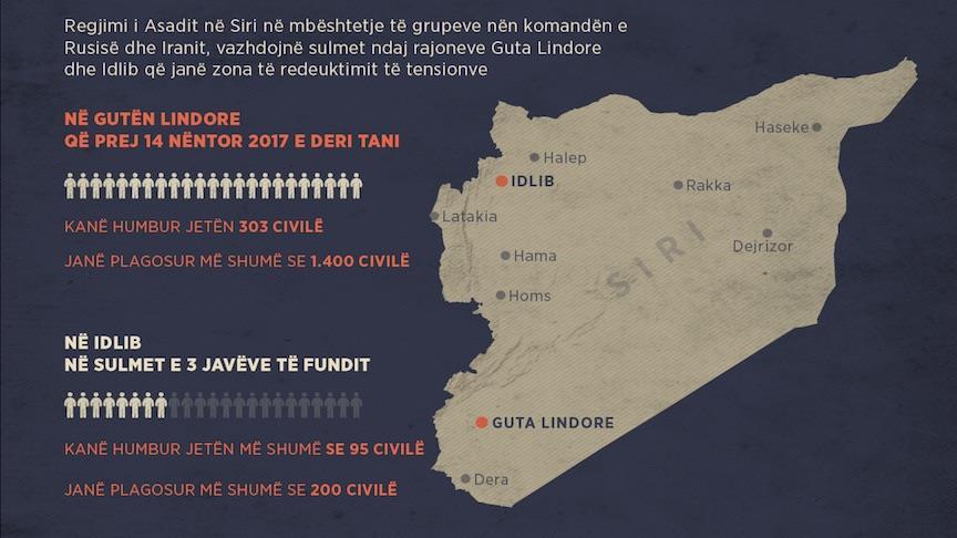 Rreth 400 civilë kanë humbur jetën si pasojë e sulmeve të intensifikuara në kohët e fundit nga regjimi i Asadit dhe mbështetësit e tij të cilët kanë shkelur armëpushimin në “zonat për reduktimin e tensioneve” në Idlib dhe në Gutën Lindore në Siri.