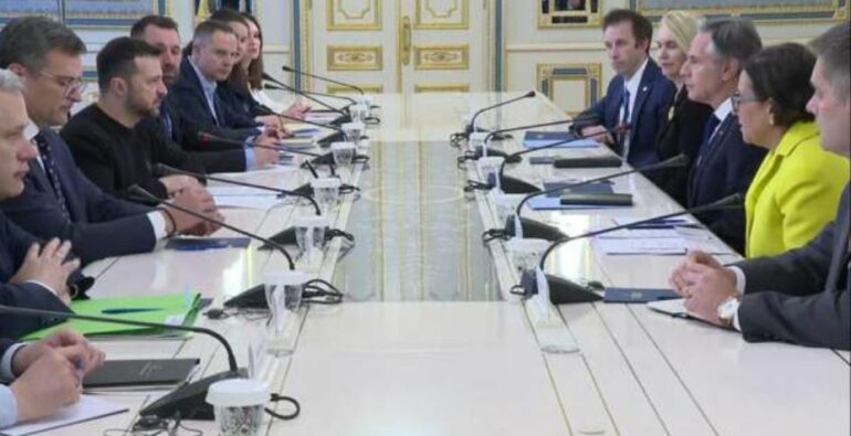 Zelensky tha se kishte qenë një periudhë e vështirë për luftëtarët ukrainas, veçanërisht në lindje të vendit. Ai falënderoi Blinken për paketën vendimtare të ndihmës ushtarake të miratuar muajin e kaluar nga Kongresi.