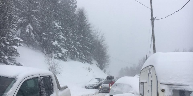 Si pasojë e të reshurave të mëdha të borës, disa vetura kanë mbetur të bllokuara nëpër rrugët e Brezovicës.