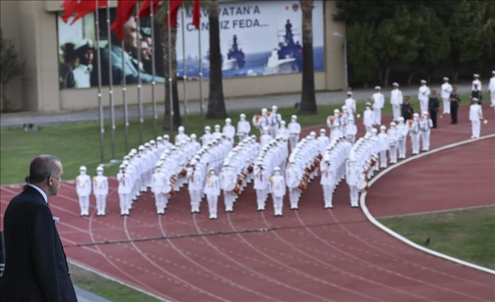 Erdoğan po fliste në një ceremoni në Universitetin Kombëtar të Mbrojtjes.
