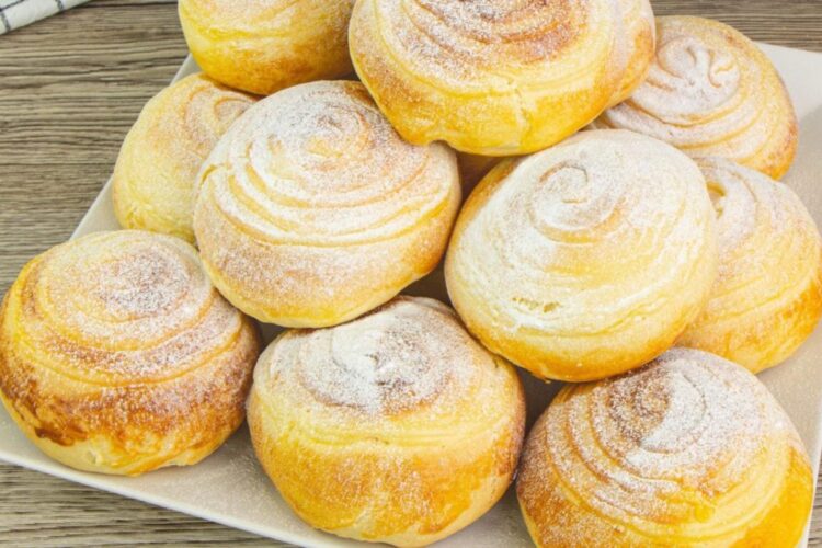 Në fund spërkasni sheqerin pluhur dhe shërbejini brioshët tuaj.