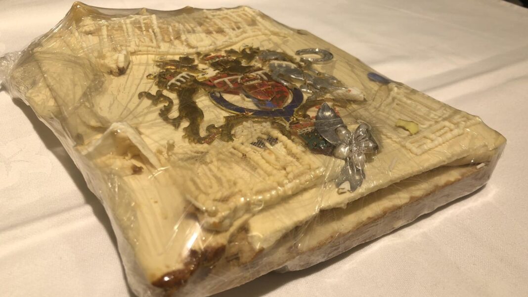 Sipas The Guardian, kjo copë e madhe prej rreth 800 gramë, e kishte marrë dhe ruajtur një grua që kishte punuar në një prej 23 tortave që ishin përgatitur për dasmën e 29 korrikut 1981.
