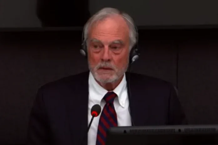 Jock Covey, i cili ka shërbyer si zëvendës i përfaqësuesit special të sekretarit të OKB-së, Bernard Kushner, po vijon dëshminë në Dhomat e Specializuara të Kosovës në Hagë.