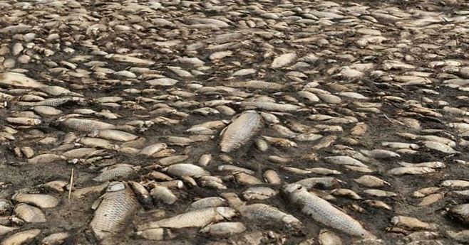 Mijëra peshq të ngordhur kanë mbushur brigjet e liqenit Koroneia, në Greqinë veriore, si rezultat i temperaturave të larta dhe rënies së nivelit të ujit.
