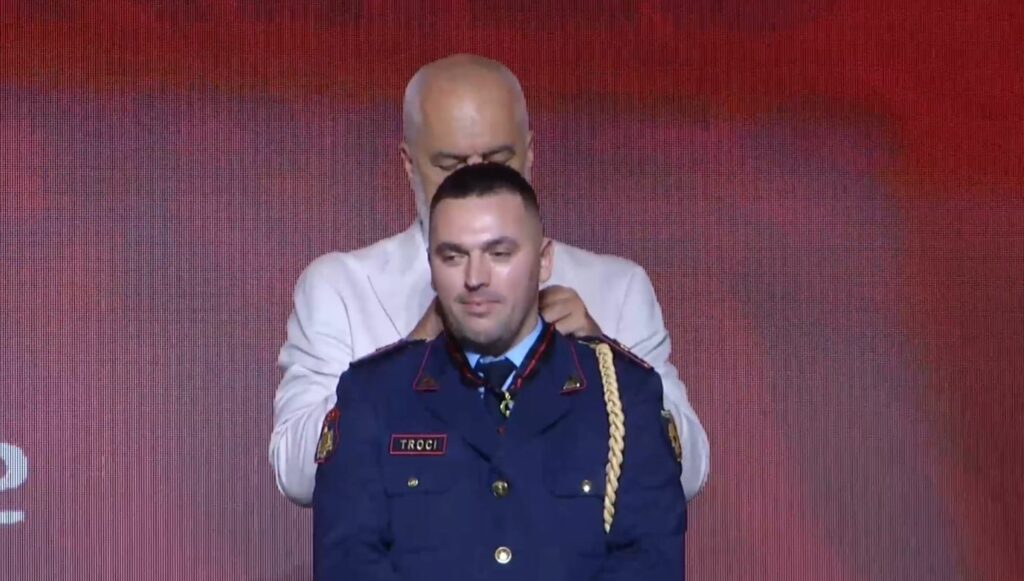 Mes të dekoruarve me Yllin e Mirënjohjes Publike ishte edhe Komisar Agim Troci, i cili u plagos vetë pasi shpëtoi disa banorë të bllokuar nga zjarret.