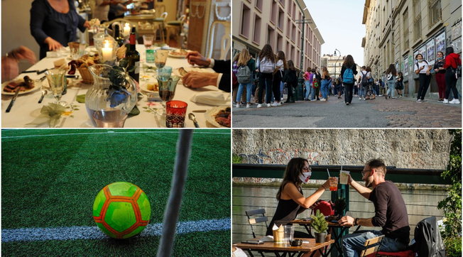 Pezullim i sporteve të kontaktit, të tilla si futboll ose basketboll, në një nivel amator (por palestra të hapura), dhe lejimi i atyre në një nivel amator për kompanitë me protokolle anti-Covid. Kjo është një nga masat e dekretit të ri të qeverisë italiane i nënshkruar nga Conte gjatë natës dhe e vlefshme për 30 ditë, me rregullat eanti-infektimit. Ndalohen gjithashtu ekskursionet shkollore, aktivitetet edukative jashtë dhe binjakëzime. Ndalim qëndrimi para lokaleve pas orës 21:00.