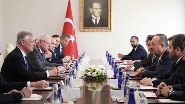 Takimi ndërmjet delegacionit turk të udhëhequr nga ministri Çavusoglu dhe delegacionit amerikan të drejtuar nga O’Brien u realizua në ambientet e Ministrisë së Punëve të Jashtme.