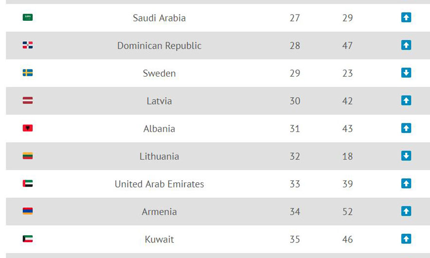 Në studim janë marrë 209 vende pjesëmarrëse në total. Ndërkohë, edhe Kosova ka pësuar përmirësim, por vetëm me 3 vende, duke u ngjitur nga ai i 71-të në të 68-in, në renditjen që kryesohet nga Shtetet e Bashkuara të Amerikës, Britania e Madhe dhe Franca. Në dhjetëshen e parë janë edhe Rusia, Vatikani, Gjermania, Japonia, Kanadaja, Izraeli dhe Holanda./Top Channel/