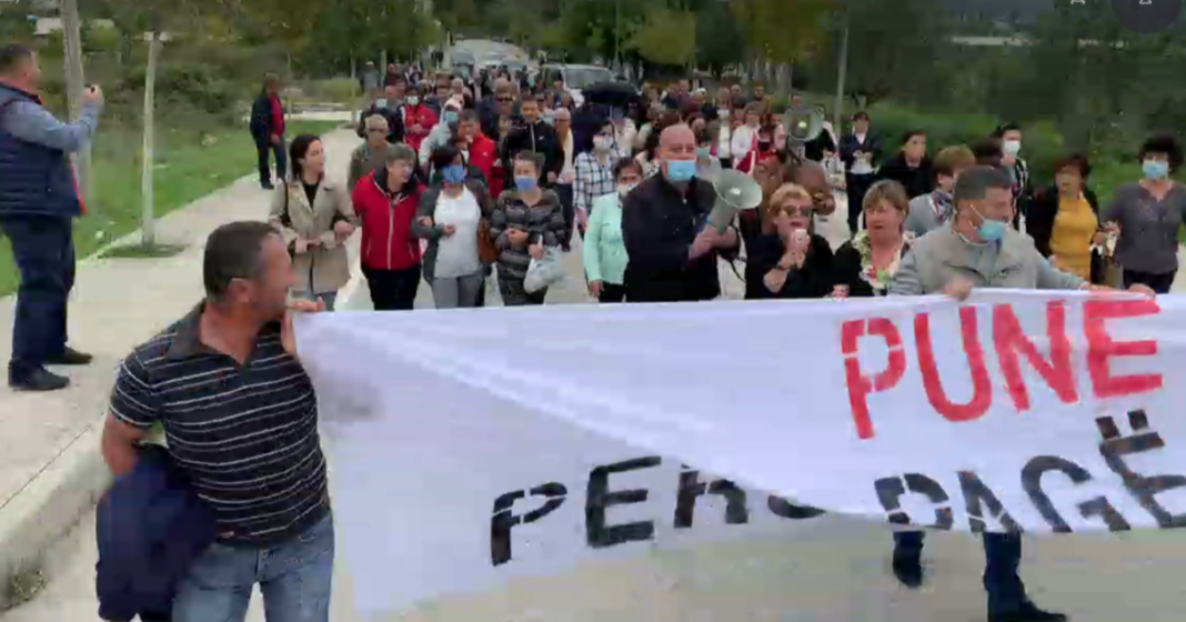 Me një banderolë në duar, ku shkruhet; “Punë, pagë, prespektivë”, naftëtarët kanë nisur një marshim, ndërsa do të stacionohen para bashkisë së Ballshit.