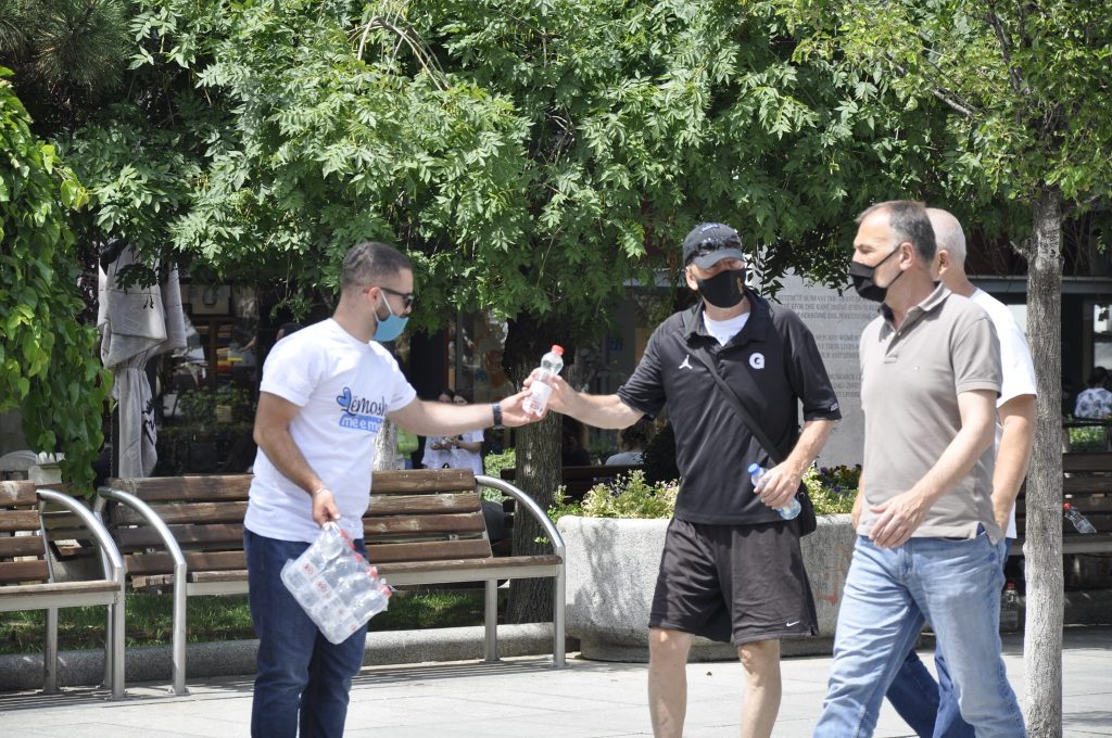 Aktivistë të kësaj organizate që është krejt vullnetare dhe angazhimin e tyre e kanë bamirës, për dy ditë rresht shpërndan në sheshet e Prishtinës dhe në QKUK, shishe me ujë.