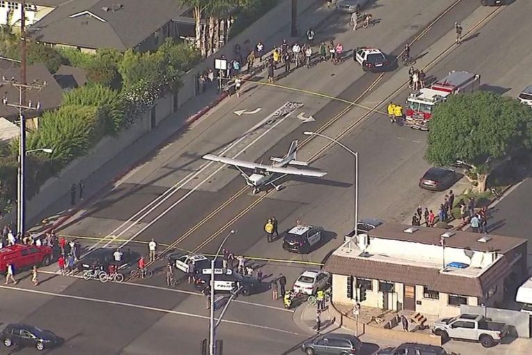 Një skenë e pazakontë ndodhi në Huntington Post afër Los Angeles-it, kur një pilot i një avioni të vogël Cessna 271 u ul në një nga rrugët e qytetit.