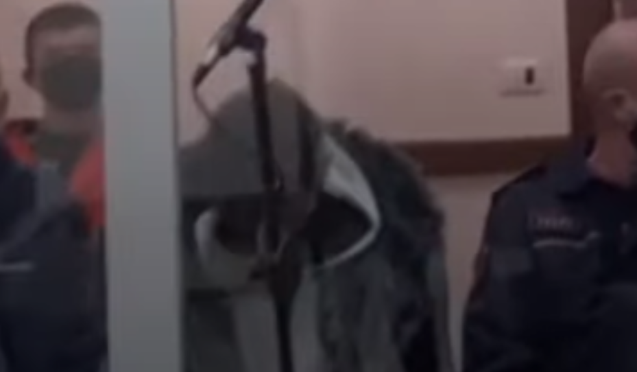 Ernejt Shyti, 24 vjeçari, i cili u ndalua në Mal të Zi dhe dyshohet se ishte porositur për të bërë vrasjen në këmbim të një shume parash duket se del me kokën ulur para trupit gjykues.