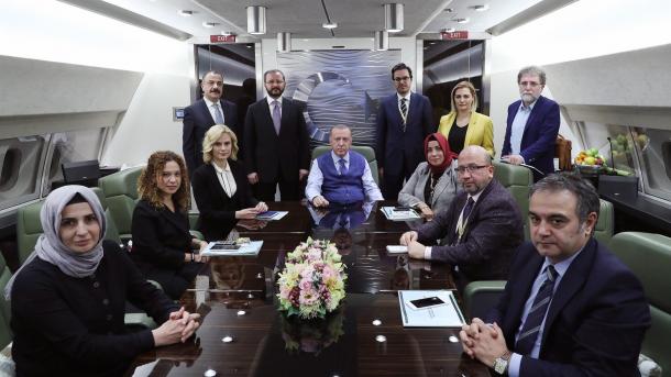 Kreu i shtetit turk vlerësoi rendin e ditës për gazetarët e pranishëm në avion gjatë kthimit nga Doha, ku shkoi për Takimin 5. të Komitetit të Lartë Strategjik Turqi-Katar.