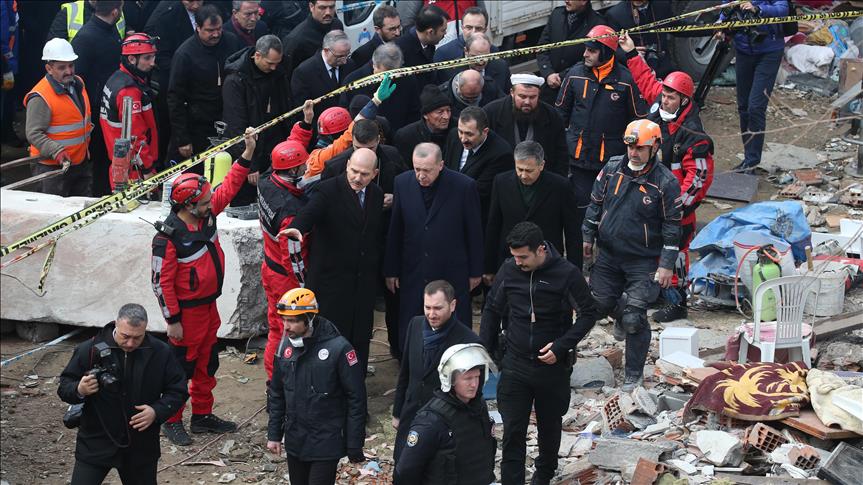 Erdogan vizitoi vendin e fatkeqësisë, ndërsa për detajet e aktiviteteve në terren që i bëjnë ekipet e shumta u informua nga ministri i Punëve të Brendshme, Süleyman Soylu, ministri i Mjedisit dhe Urbanizmit, Murat Kurum, ministrit të Shëndetësisë, Fahrettin Koca dhe prefekti i Stambollit, Ali Yerlikaya. Në shoqërim të presidentit Erdoğan ishte edhe ministri i Mbrojtjes Hulusi Akar.