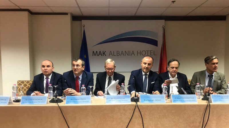Në përfundim të takimeve dyditore në Tiranë, delegacioni i Parlamentit Europian, që erdhi me qëllim kryesor diskutimet për zgjidhjen e ngërçit politik në Shqipëri mes Qeverisë dhe opozitës, mbajti paraditen e kësaj të enjteje një konferencë për mediet, në qendër të së cilës ishte mesazhi për bashkëpunim përpara vendimit për çeljen e negociatave.