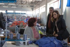 Ish-deputetja demokrate Jorida Tabaku ka vizituar sot një biznes fason, rrobaqepësi, ku punëtoret ishin kryesisht gra.