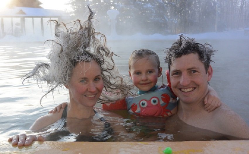 Gara e flokëve të ngrirë është ideale për pjesëmarrës që shkojnë të pushojnë në një pikë turistike ujërash termale në Yukon të Kanadasë.