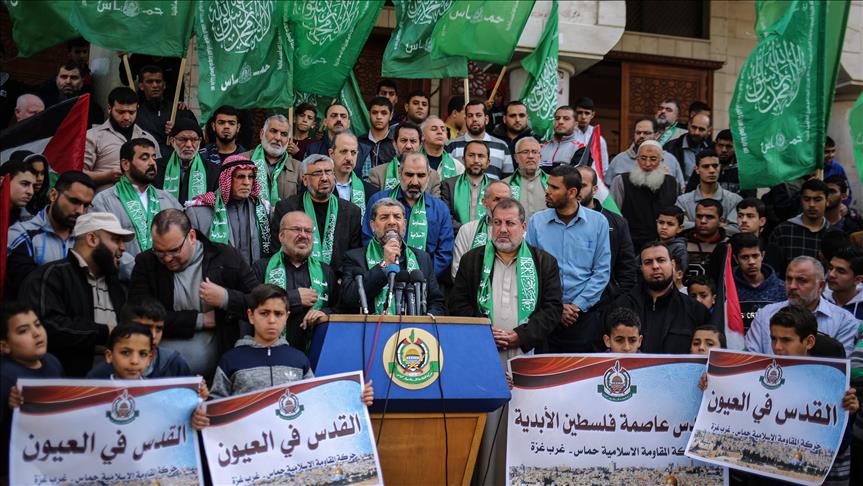 Drejtori i Departamentit të Çështjeve për Kudsin nga Hamasi, Ahmed Ebu Halibe tha se “Ne jemi këtu kundër vendimit të SHBA-ve në ditën e 100-të të këtij vendimi. Theksojmë se ne jemi pronarë të këtyre tokave dhe se kemi të drejta ligjore mbi Palestinën, Kudsin dhe Mesxhid-i Aksa-në”.