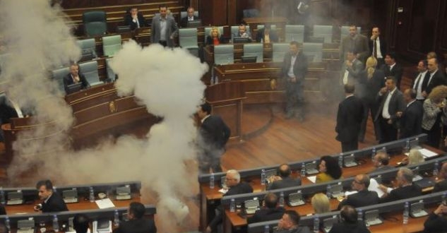 Votimi për Demarkacionin është ndërprerë për të dytën herë pas hedhjes së gazit lotsjellës nga deputetët e Lëvizjes Vetëvendosje.