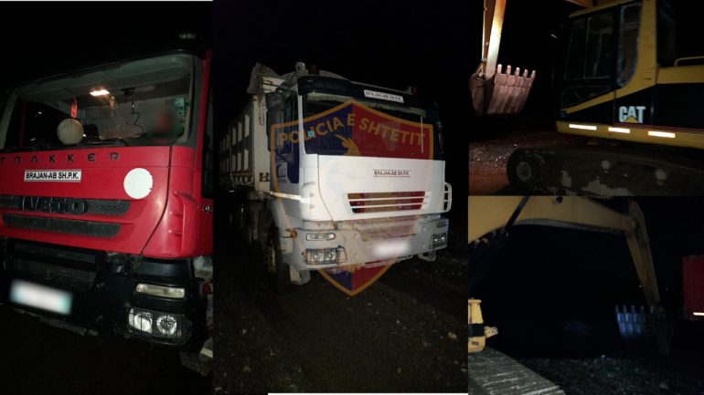 Nga shërbimet e Policisë u sekuestrimi i një ekskavatori dhe i dy kamionëve shërbenin për marrjen e inerteve.
