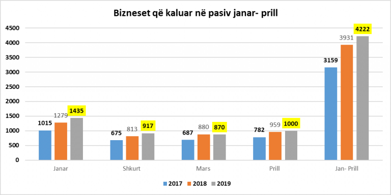 Prej fillimit të vitit dhe deri më tani kanë kaluar nëstatusin pasiv 4,222 biznese me një rritje prej 7% nëkrahasim me të njëjtën periudhë me një vit më parë.