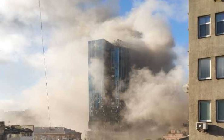 The building where the the visa office of the German embassy in Kyiv was located was hit by Russians today. Any reaction of @Bundeskanzler @ABaerbock @BMVg_Bundeswehr ? Maybe some Leopards can be sent to check the situation on the ground? pic.twitter.com/hU2wVWrK87