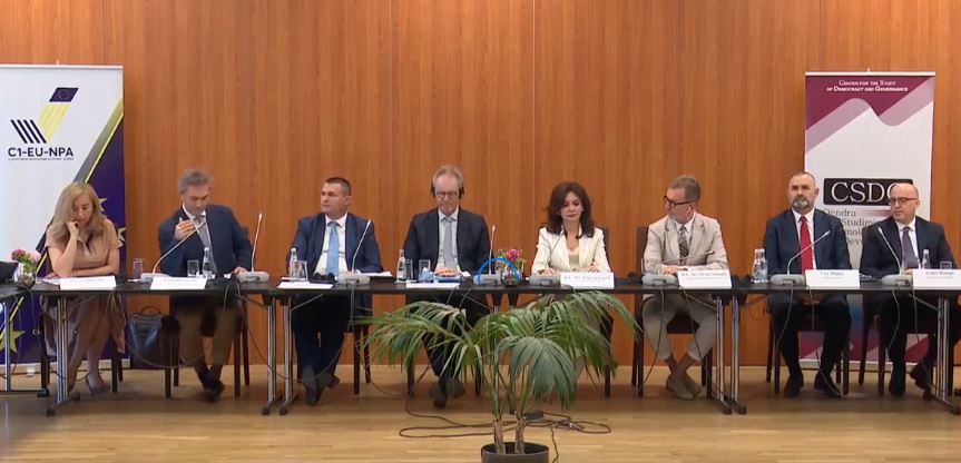 Ambasadori i Bashkimit Evropian në Shqipëri, Silvio Gonzato, ishte pjesë e tryezës së diskutimit “Vlerësimi i Arkitekturës Institucionale në funksion të Performancës dhe Integritetit të Prokurorisë së Posaçme: Garancitë për Pavarësi dhe Mekanizmat e Llogaridhënies Organizuar nga Qendra për Studimin e Demokracisë dhe Qeverisjes”.