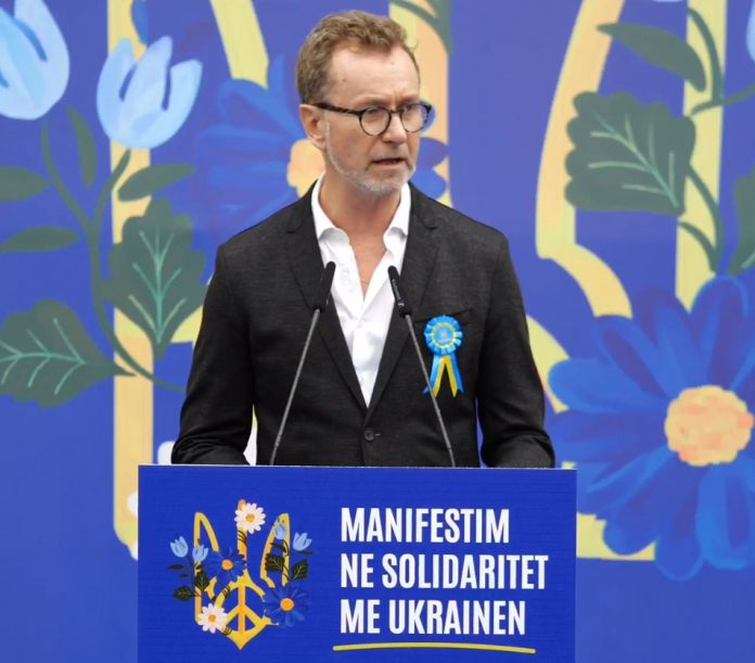 Ambasadori i BE u shpreh se, “populli i thjeshtë ukrainas është kthyer në heronj përditë, ata janë frymëzim për të gjithë ne. Prandaj ne atyre u themi, BE, shtetet e veta anëtare, por edhe Shqipëria, së bashku me aleatët tanë, do të vazhdojnë që të bëjnë çfarëdo që të duhet, për aq kohë sa do të duhet që Ukraina të fitojë”.
