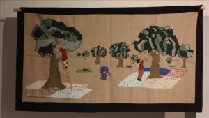 Ky projekt përdor aftësitë e qëndisjes së grave palestineze për të “ilustruar aspekte të tokës dhe popujve të Palestinës nga kohët neolitike deri në të tashmen”.