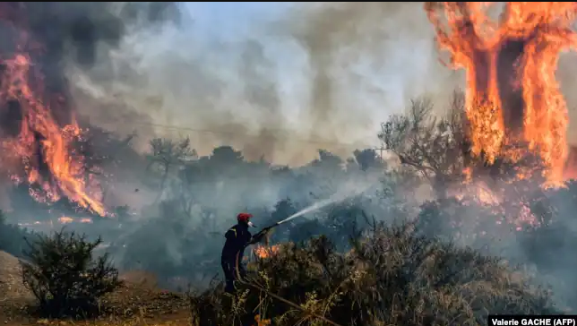 Greqia u përpoq të frenonte një zjarr në perëndim të Athinës, i cili dogji tokën pyjore për të pestën ditë të premten, pasi një tjetër valë nxehtësie goditi vendin.