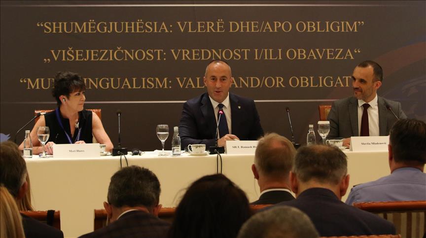 Haradinaj po ashtu shtoi se sipas kushtetutës dhe ligjit për përdorimin e gjuhëve në Kosovë gjuha shqipe dhe ajo serbe gëzojnë statusin e barabartë të gjuhëve zyrtare, ndërsa gjuhët e komuniteteve tjera si gjuha boshnjake, turke dhe rome gëzojnë statusin e gjuhëve zyrtare dhe gjuhëve në përdorim zyrtar në komuna.