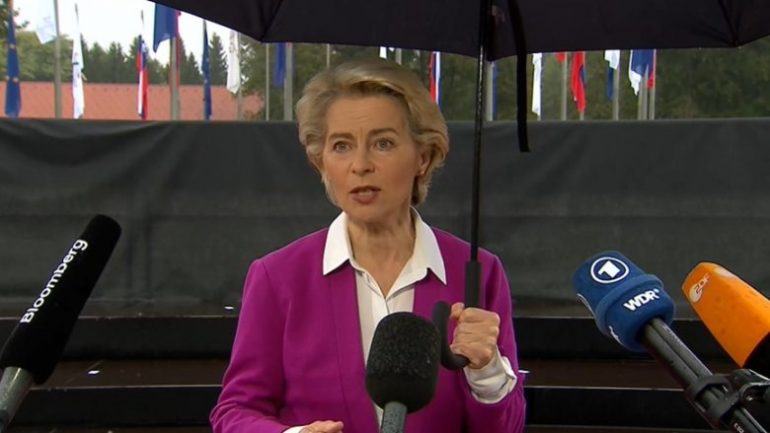 Presidentja e Komisionit Evropian, Ursula Von der Leyen, pak para nisjes së samitit Ballkani Perëndimor-BE, në Slloveni, ka dhënë një mesazh .