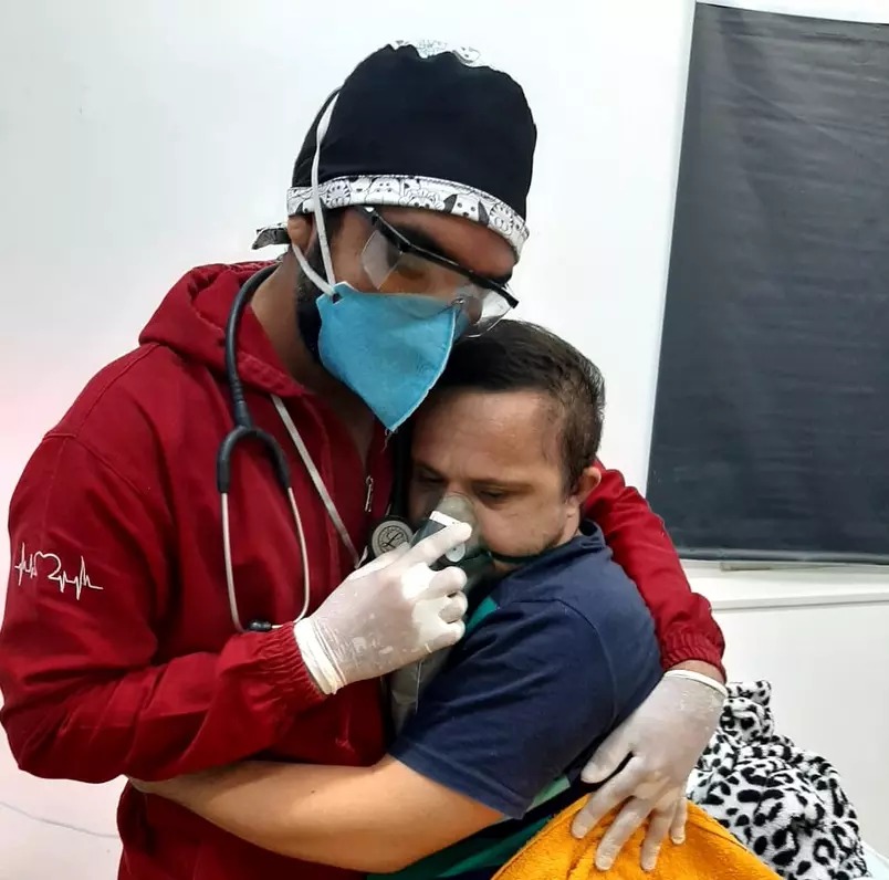 Në një kohë kur distancimi social dhe fizik është një nga kushtet për të mposhtur COVID-19, një përqafim ka shpëtuar jetën e Erson Merson Junior, 30-vjeç. I riu me aftësi të veçanta, është shtruar në spitalin Caapiranga, në Amazonë.