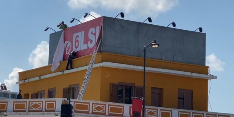 Incident në Fier/ Bëheshin përgatitje për mbylljen e fushatës së PS. LSI vendos banerin në bulevard, policia ua heq!