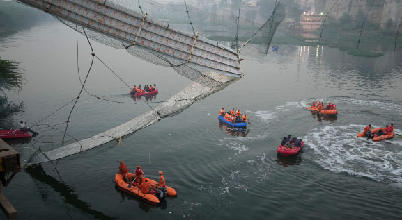 Mediat në Indi raportuan se 141 njerëz kanë vdekur dhe 177 kanë shpëtuar, pas rrëzimit të urës, e cila është rinovuar kohet e fundit.