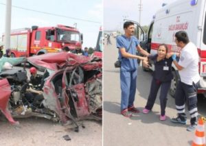 I mituri u dërgua menjëherë me ambulancë në Spitalin e Aksarayt, ku punon si infermiere bashkëshortja e Onurcan Çelebi, Necla. Me të mësuar për aksidentin, ajo u nis për në vendngjarje, ku edhe gjeti bashkëshortin të pajetë.